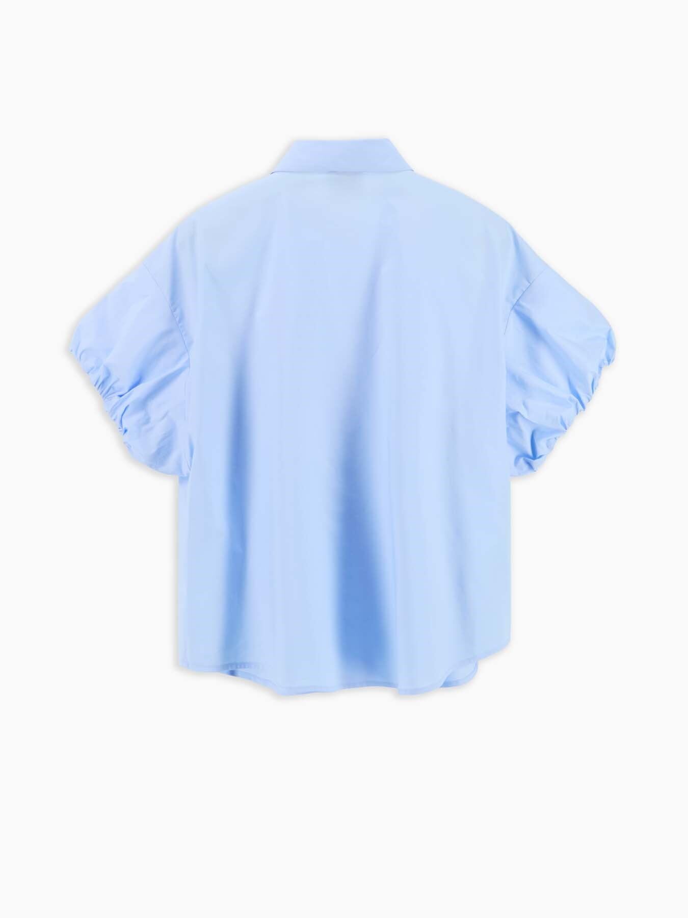 Camicia a maniche corte, colletto a punta classico, chiusura frontale con bottoni.