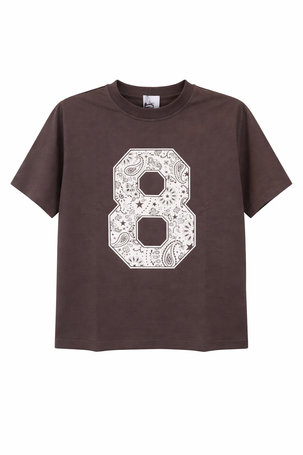 T-shirt girocollo in jersey di cotone a maniche corte, stampa frontale a fantasia bandana, volume boxy
