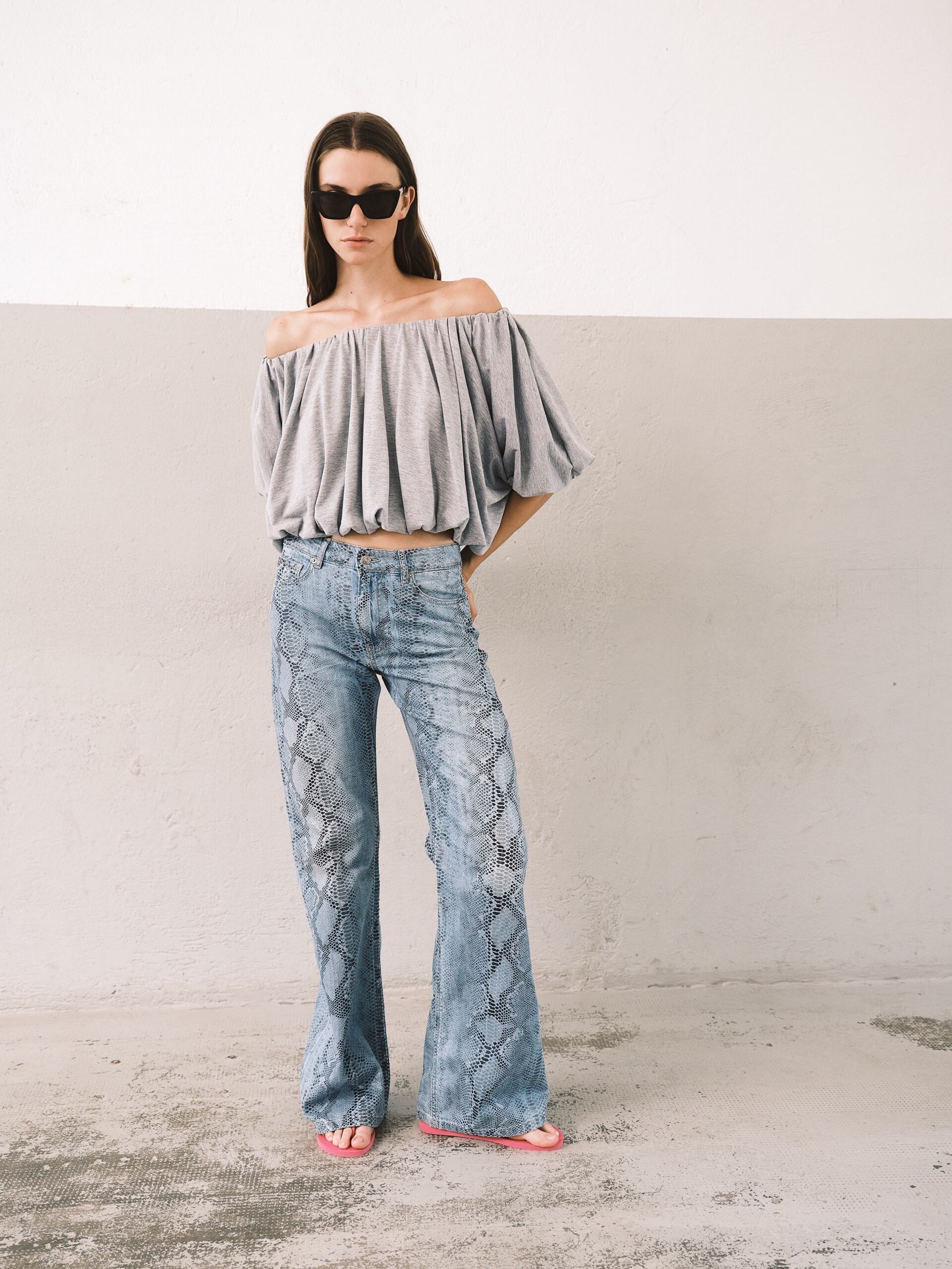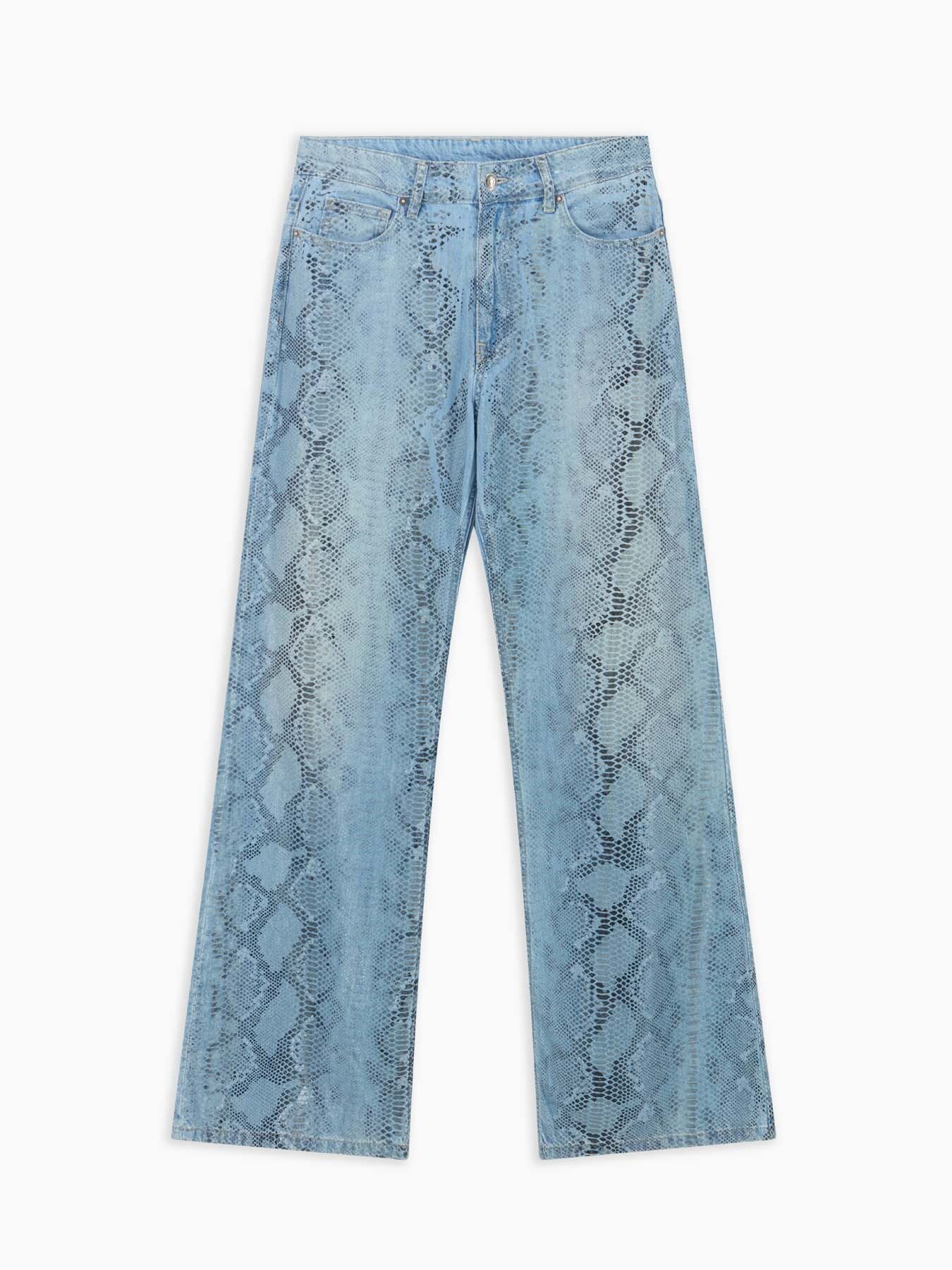 Pantalone 5 tasche color azzurro pitone