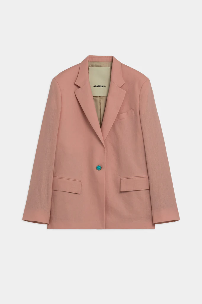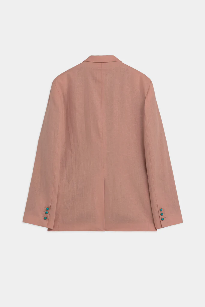 Giacca 100% lino dal fit rilassato. Modello con rever classici, chiusura monopetto, taschino sul petto e tasche applicate frontali. Design essenziale con bottoni sui polsi.