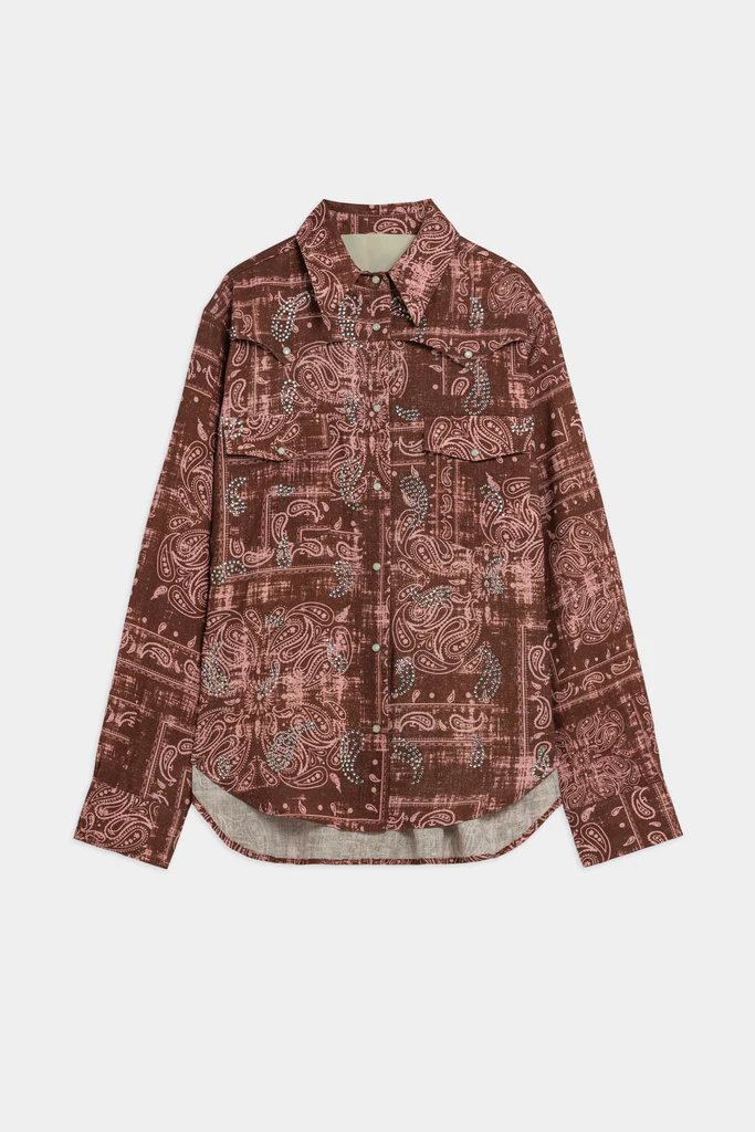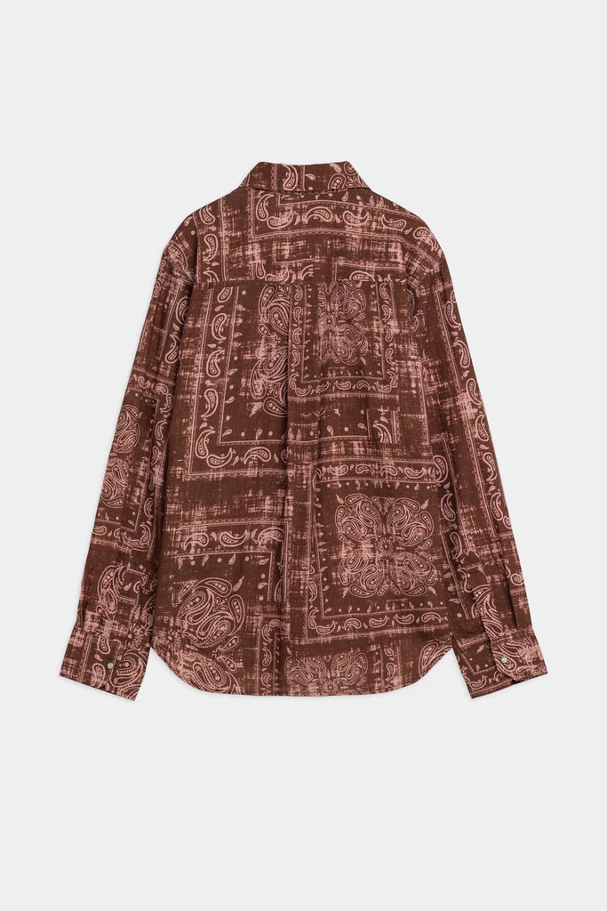 Camicia in misto lino con stampa bandana all-over. Modello con colletto classico, chiusura frontale con bottoni e fit morbido.