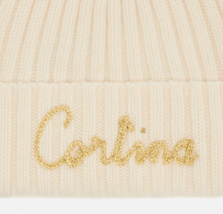Berretto Wengen in misto cashmere con ricamo lurex Cortina e pompon