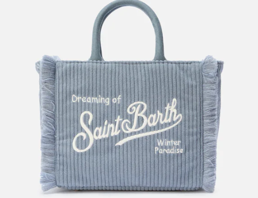 Saint Barth Borsa a mano Vanity Mini Corduroy in velluto a coste e faux suede