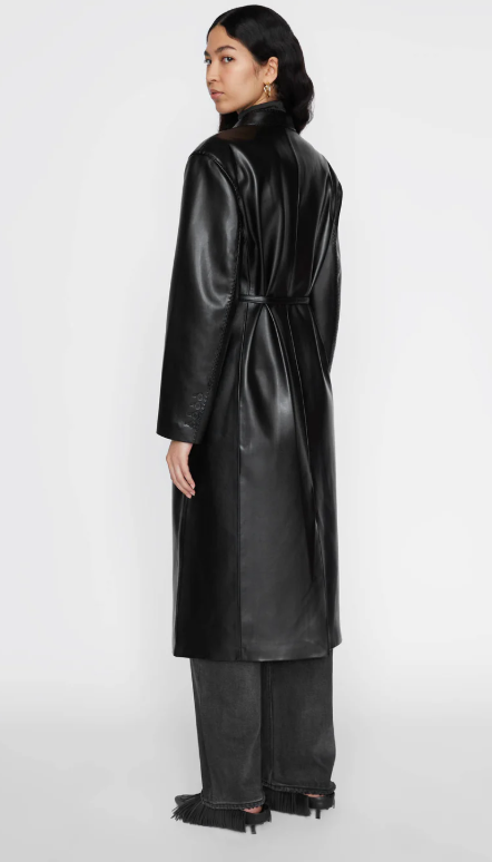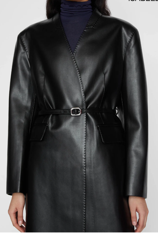 CAPPOTTO LUNGO IN ECOPELLE CON CINTURA.