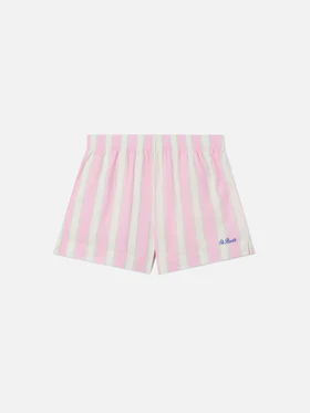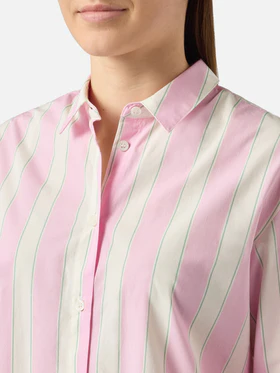 Coordinato camicia e pantaloncino in cotone, rosa a righe, vestibilità camicia over, short regular.