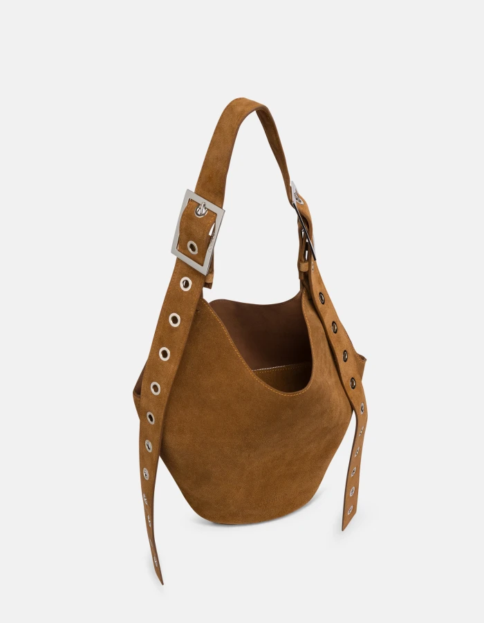 Big hobo con manico singolo regolabile, doppia fibbia logata ed occhielli, logo marchiato a caldo. Clutch interna removibile logata a caldo con chiusura a zip. Crosta. Logo Dondup. Made in Italy