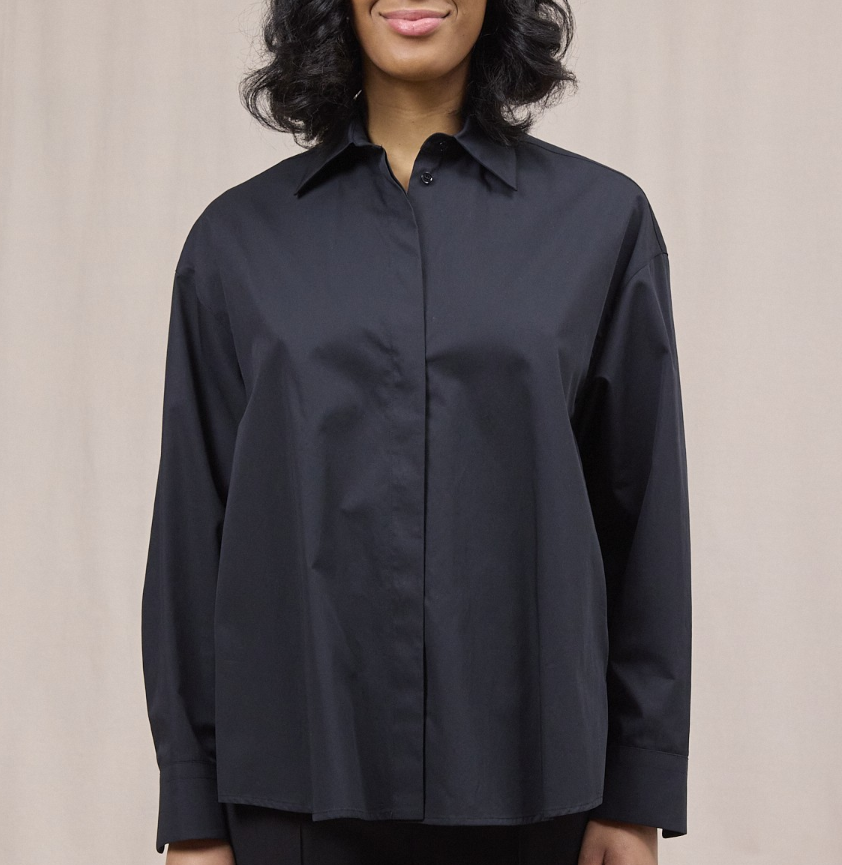 Camicia over a maniche lunghe con abbottonatura davanti nascosta e dietro in voile. Gabardina tinto filo. Logo Dondup. Made in Italy