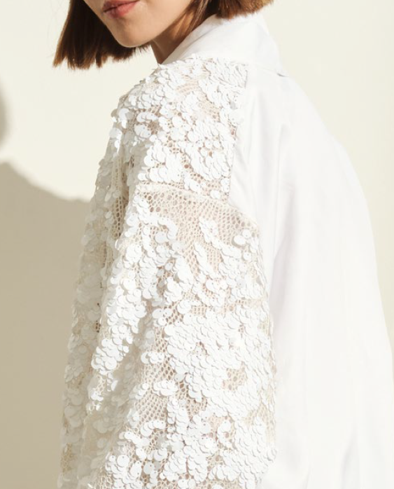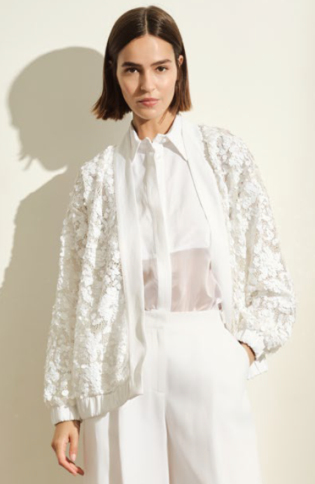 Giacca modello bomber con paillettes, parte posteriore in tessuto.
