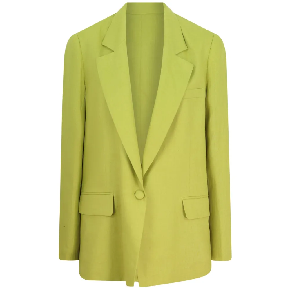 Giacca taglio classico colore lime con bottone e tasche frontali.