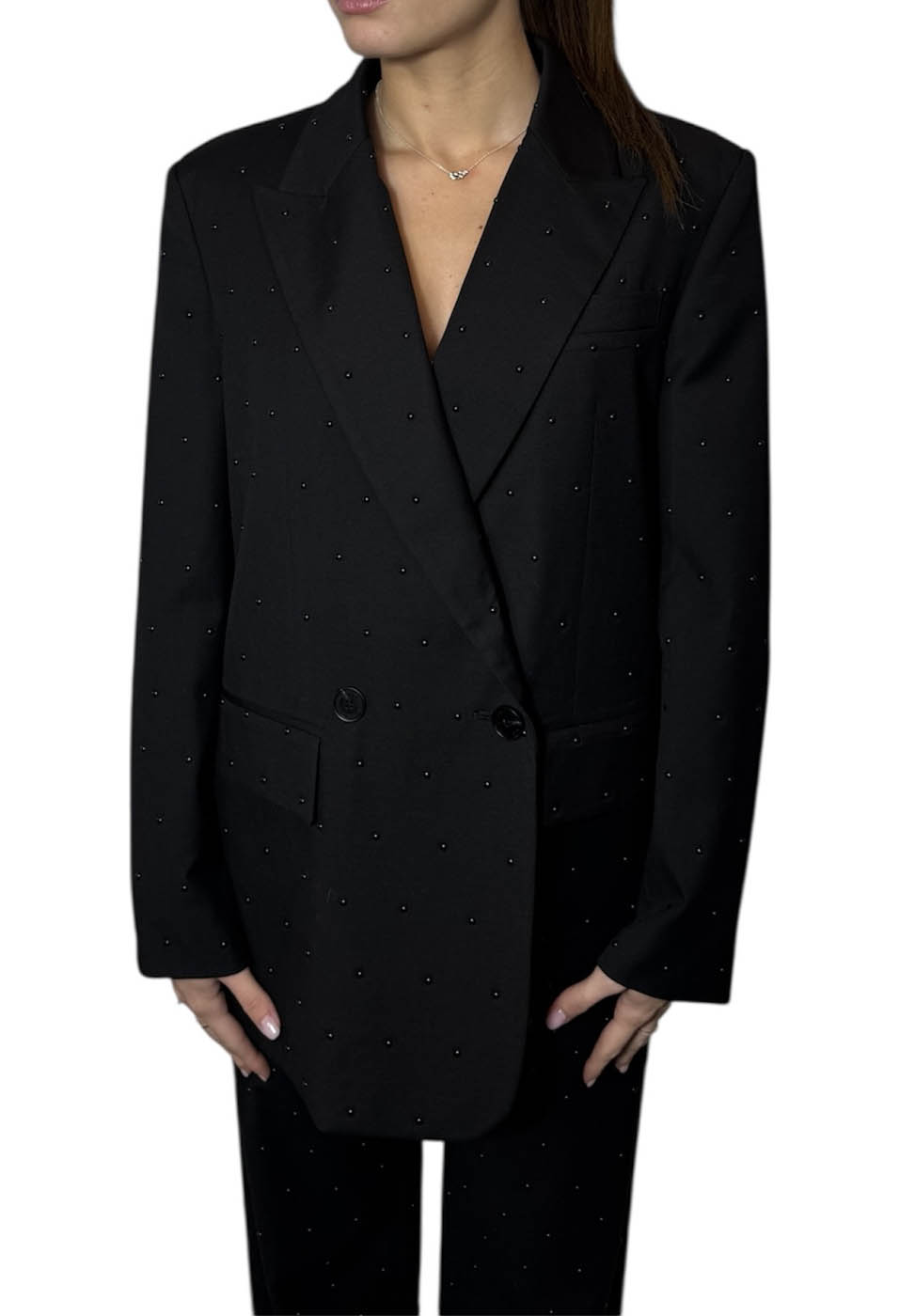 Blazer doppiopetto con applicazione borchie nere