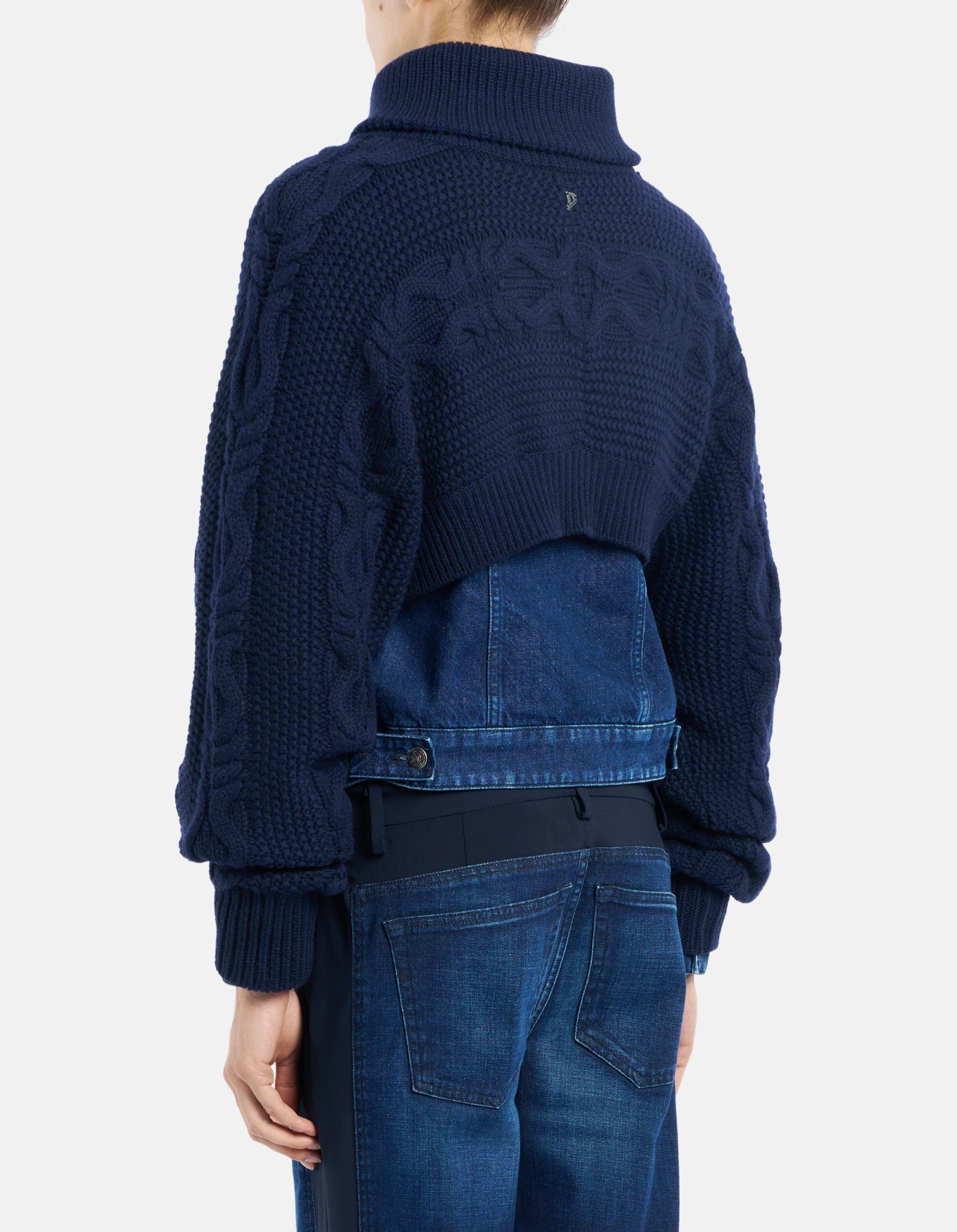 Giubbino slim composto da bolerino in maglia removibile chiuso con zip e giubbino in denim con bottoni chiodo, imbottito con ovattina leggera. Lavaggio medio pulito. Logo Dondup.