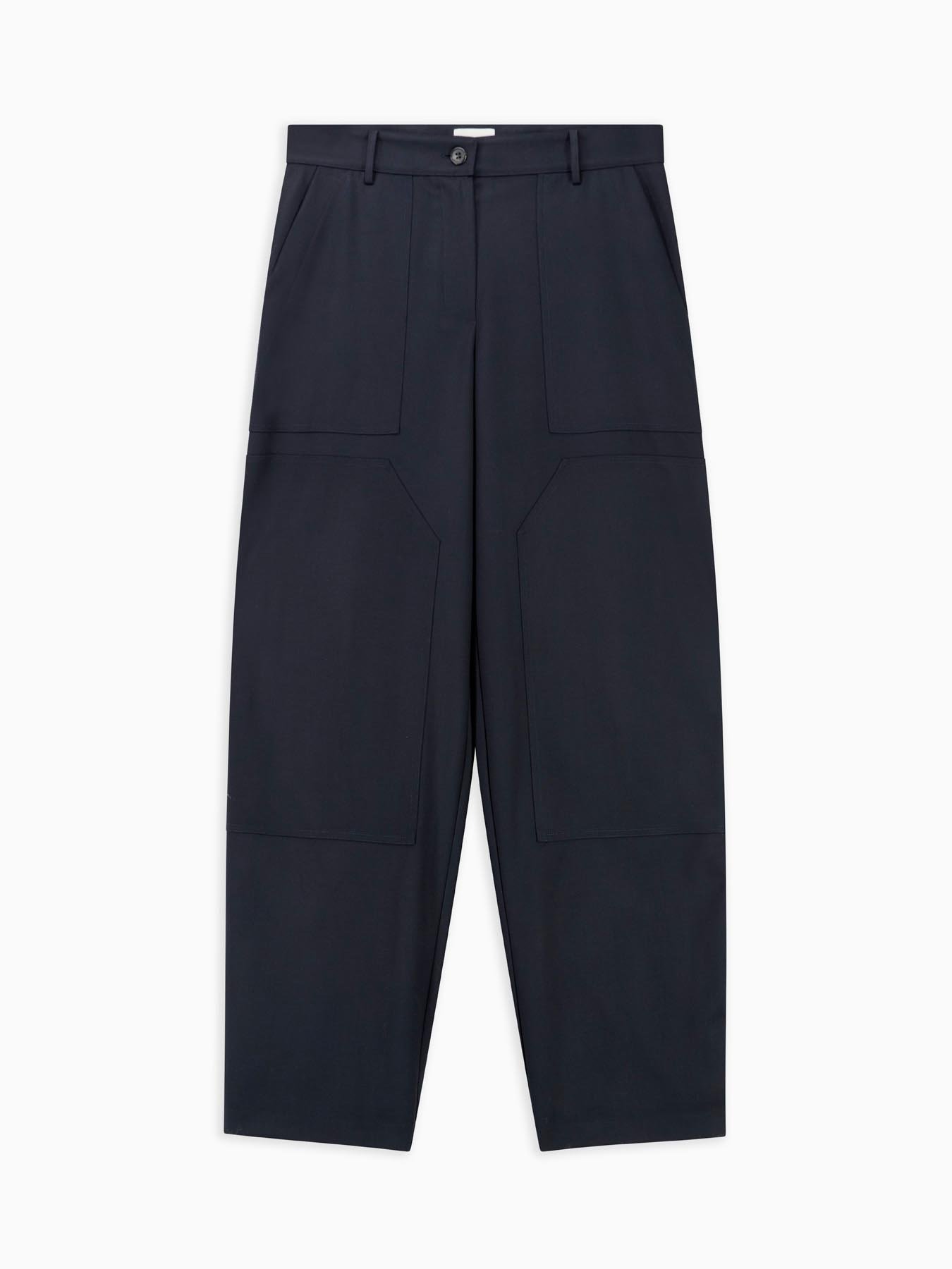 pantalone due tasche applicate sul davanti e due posteriore, passanti per la cintura in vita, vestibilità morbida.