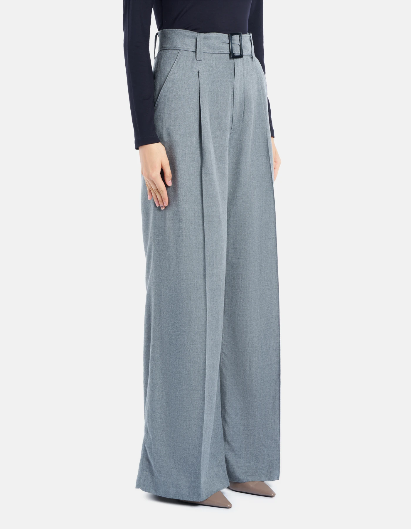Pantaloni Kim loose chino, vita bassa con cinta, pinces sul davanti. Levantina di viscosa.