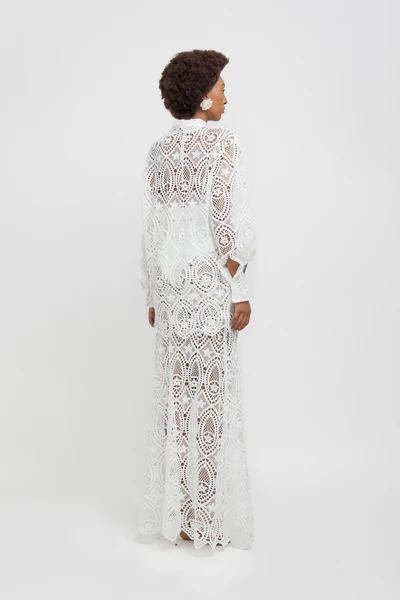 Camicia fit oversize in pizzo macrame’ con lavorazione colletto hand-made.