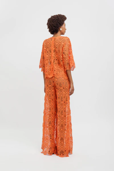 Weili Zheng Pantapalazzo in pizzo macrame’ colore arancio